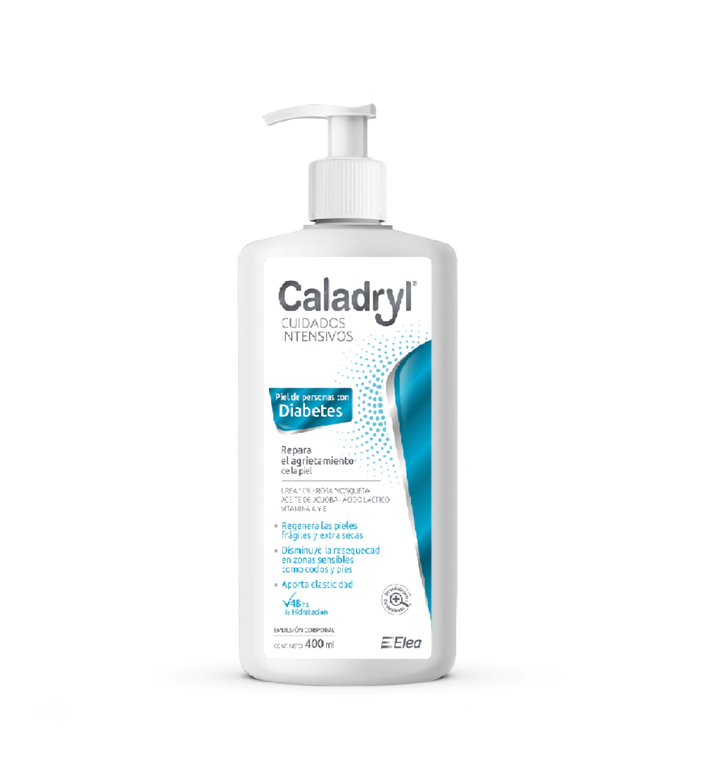 La piel de personas con diabetes puede verse frágil, delicada y con resequedad. Si no se cuida e hidrata habitualmente puede producirse un daño en la barrera cutánea, generando irritación y picazón. Caladryl Cuidados Intensivos para piel de personas con diabetes elimina los síntomas de resequedad, repara el agrietamiento y restaura la barrera de la piel normalizando los niveles de hidratación.
